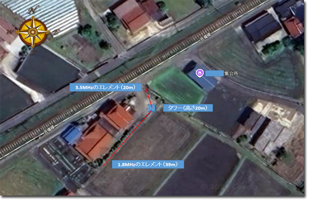 3.5MHzのエレメントは、ほぼヨーロッパのショートパス方向に向いていて、しかも真下には用水路があり常に水が流れているので、めちゃめちゃ飛びそうですね。(EUでエンティティーが稼げそうです)
